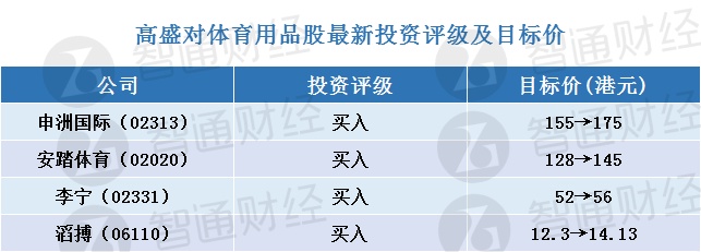 智通财经APP获悉,高盛发表研究报告称,维持安踏体育(02020)、李宁(02331)、申洲国际(02313)及滔搏(06110)“买入”评级。