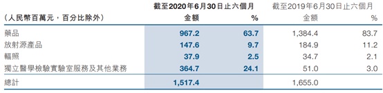 从业绩上来看,截止2020年上半年,公司受疫情影响业务板块增幅不一,药品和放射源产品受到医院停诊、就医人数下降及工业停工影响分别实现营收9.67亿元、1.48亿元,分别较上年同期下降30.13%、20%;辐照和独立医学实验实验室服务及其他业务受疫情防护用品需求及核酸检测需求分别实现营业收入0.38亿元、3.65亿元,同比增长9.2%、615.1%。