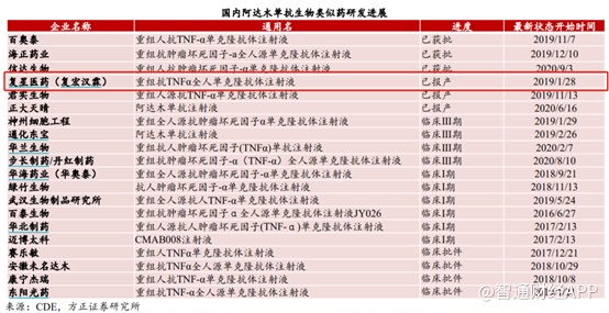 目前,百奥泰、海正药业、信达生物的阿达木单抗类似物已经上市,复宏汉霖的HLX03成为第四个上市的阿达木单抗类似物。