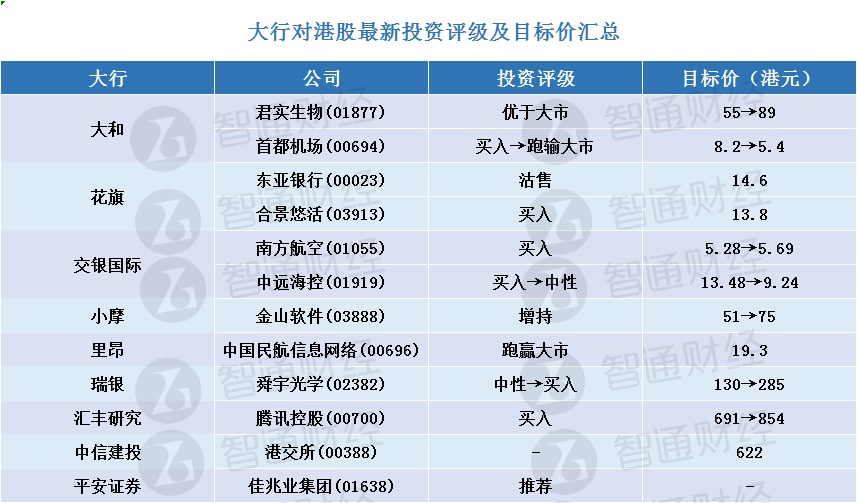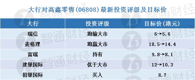 二、大行对高鑫零售(06808)最新投资评级及目标价