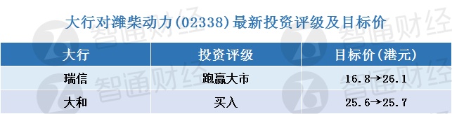 四、大行对潍柴动力(02338)最新投资评级及目标价