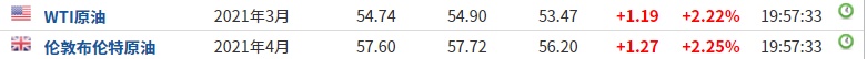 截至发稿,WTI原油涨2.22%,报54.74美元/桶。布伦特原油涨2.25%,报57.60美元/桶。