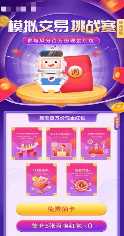 案例1:某证券机构的模拟交易大赛通过操作简单且学习成本极低的集卡活动,提升客户对产品的理解度和接受度,该活动吸引了20万UV参与,参与率达到99%。