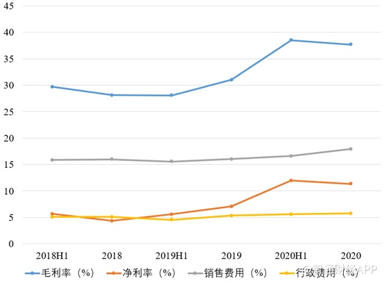 智通财经APP注意到,维达国际净利润大幅增长主要源于公司毛利率的提升,以及销售费用和行政费用的稳定。数据显示,2019年之前,维达国际的毛利率在30%以下,2019年突破30%达到了31%,2020H1达到了38.5%,2020全年毛利率为37.7%,较2019年增长了6.7个百分点。与此同时,销售费用比率仅增长2个百分点,行政费用仅增长0.4个百分点。因此净利率提升4个百分点,那么维达国际能否长期维持高毛利呢?