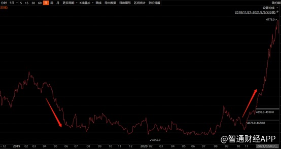 数据显示,纸浆期货从底部约4500元/吨已涨至约6500元/吨,月涨幅超过了40%。纸浆价格的波动与成品纸的交易市场互相影响,成品纸提价带动了纸浆价格的上涨。同时国内禁塑令的推广,带动了纸品的需求增长,对纸浆价格呈现利好。