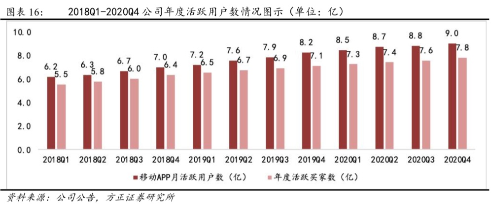 (1)年度活跃用户数:20Q4公司年度活跃买家数达到7.8亿,相比上一季度增长2200万。