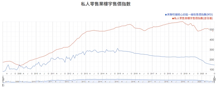 而我们如果根据美联工商铺资料研究部的美联旺铺核心四区一线街售价指数,即是主要统计是根据旺角、尖沙咀、铜锣湾及中环区内的一线街的平均呎价计算,你会发现一个比较特别的结果。此指数由2015年333.9见顶,之后反复回落至2019年初的248点,而今天已经是166.6。而今年的跌势加快,由213跌至166点,跌约28%。