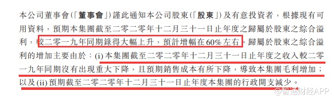 在正面盈利预告中,信邦控股对2020年股东净利润同比增长60%左右作出了两个粗略的解释,其一是因为收入同比未出现重大下降,以及销售成本的降低;其二是行政开支的减少。