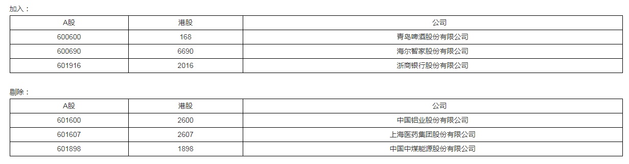 智通财经APP获悉,2月5日,中证指数有限公司与恒生指数有限公司宣布截至2020年12月31日之中证恒生沪港通AH股精明指数的半年度指数检讨结果。成分股加入青岛啤酒、海尔智家、浙商银行,剔除中国铝业、上海医药集团、中国中煤能源,成份股公司数目仍维持50只。