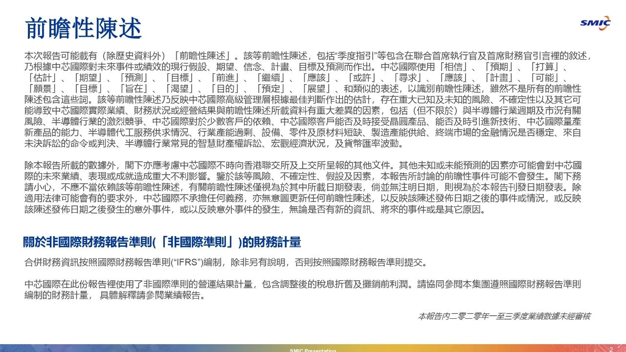 中芯国际2020年第四季度业绩电话会议