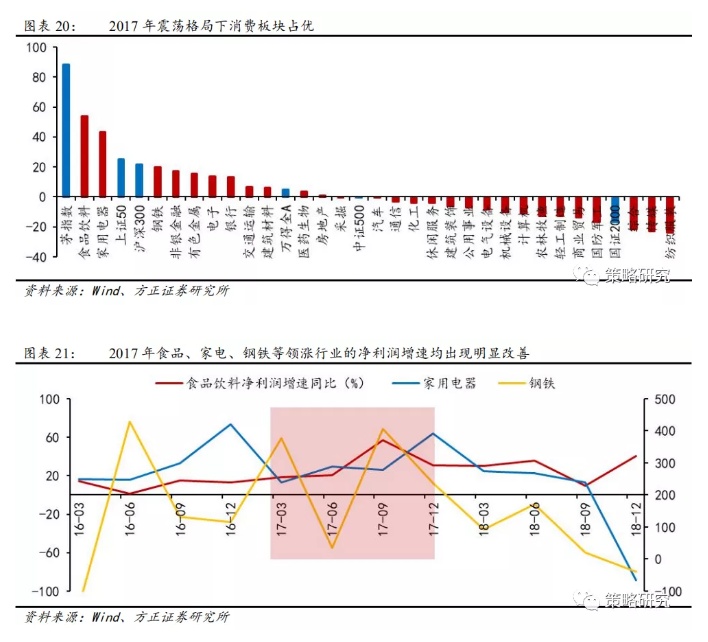 4、2017年经济整体呈现企稳回升的态势,而货币信用环境经历了循序渐进式地由松转紧。市场保持横盘震荡,估值调整背景下业绩增速的大幅提升是市场走出慢牛行情的核心逻辑,全年食品饮料、家用电器、钢铁领涨。
