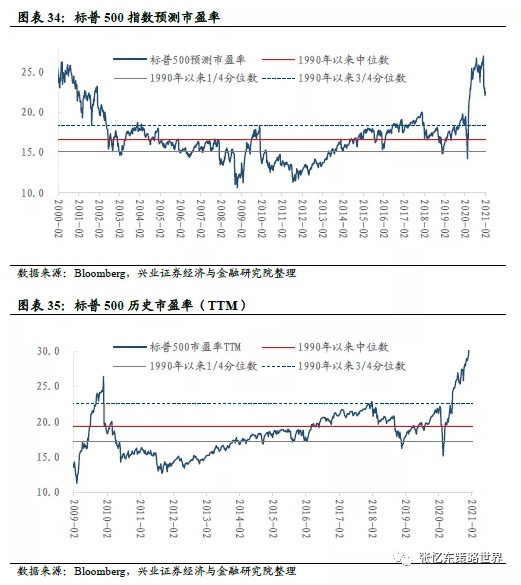 截至2月5日,标普500市盈率(TTM)为31.8倍,高于上周五的30.4倍,高于1990年以来的3/4分位数。
