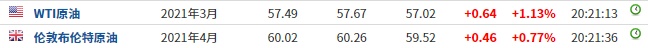 截至发稿,WTI原油涨1.13%,报57.49美元/桶。布伦特原油涨0.77%,报60.02美元/桶。