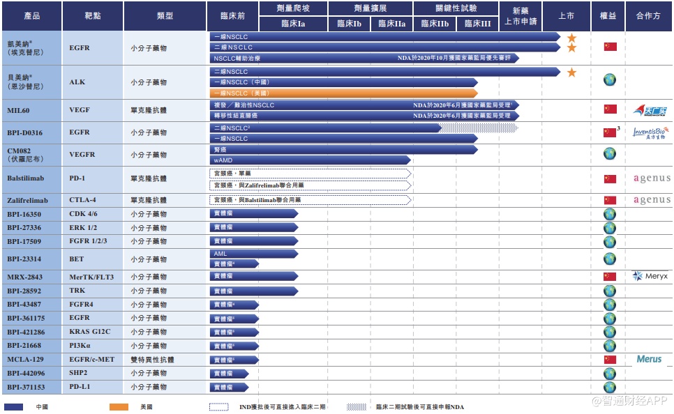 下表汇总了贝达药业已上市及主要候选药物截至最后实际可行日期的研发进度。