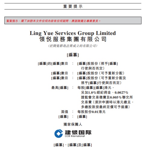 智通财经APP获悉,据港交所2月9日披露,领悦服务集团有限公司(以下简称“领悦服务”)向港交所递交上市申请,建银国际为其独家保荐人。
