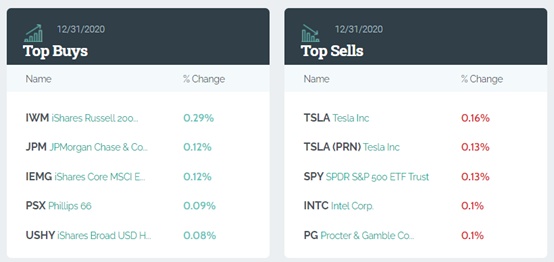 前五大卖出标的分别是:特斯拉(TSLA.US) ,特斯拉的可转债,标普500指数ETF-SPDR(SPY),英特尔(INTC.US),宝洁(PG.US)。