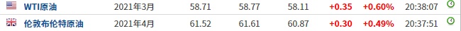 截至发稿,WTI原油涨0.60%,报58.71美元/桶。布伦特原油涨0.49%,报61.52美元/桶。
