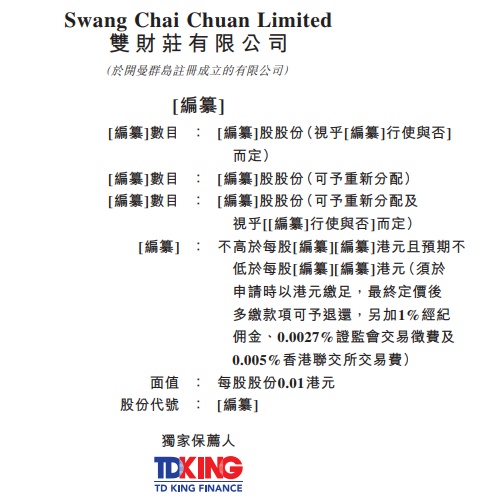 智通财经APP获悉,据港交所2月10日披露,双财庄有限公司申请在港交所主板上市,TD KING FINANCE为其独家保荐人。