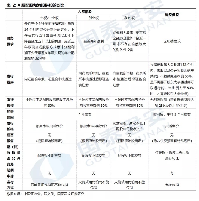 1.2.1. 港股供股VS A股配股:大规模发行仍有可能