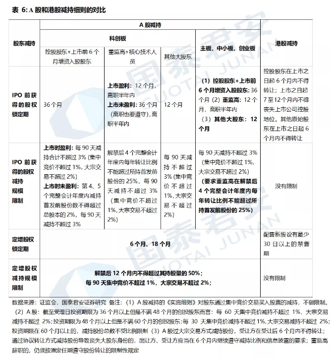 2)港股对股东减持规模没有限制。而A股则有明确限制。