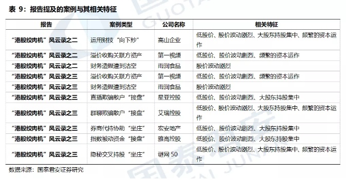 在第二、第三篇报告中,我们整理出的两类港股案例:公司治理失效和交易结构异常导致的“绞肉机”现象中,以上四个特征频繁出现。