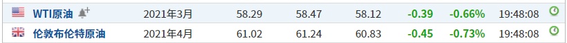 截至发稿,WTI原油跌0.66%,报58.29美元/桶。布伦特原油跌0.73%,报61.02美元/桶。