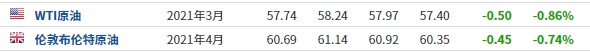 截至发稿,WTI原油跌0.86%,报57.74美元/桶。布伦特原油跌0.74%,报60.69美元/桶。