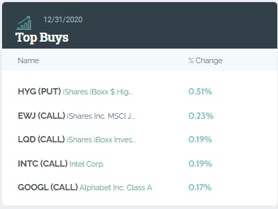 从持仓比例变化来看,瑞银集团前五大买入标的分别是:债券指数ETF-iShare iBoxx高收益公司债看跌期权(HYG.US,PUT) 、日本ETF-iShareMSCI看涨期权(EWJ .US,CALL)、债券指数ETF-iShares iBoxx投资级公司债看涨期权(LQD.US,CALL)、英特尔看涨期权(INTC .US,CALL) 、谷歌A看涨期权(GOOGL .US,CALL)。