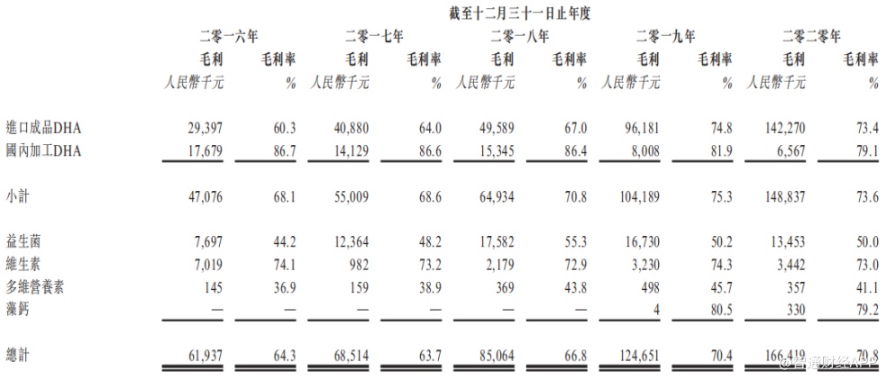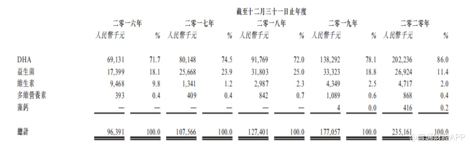 根据纽曼思招股书,公司主要在中国从事保健食品及健康食品营销、销售及分销,产品共23款,大致分为五大类,即DHA、益生菌、维生素、多维营养素及藻钙。其营收主要来自俗称“脑黄金”的DHA产品。目前,纽曼思在中国拥有多渠道销售网络,包括合计54名地区分销商、40个网上销售渠道、5间寄售店及37间零售门店。