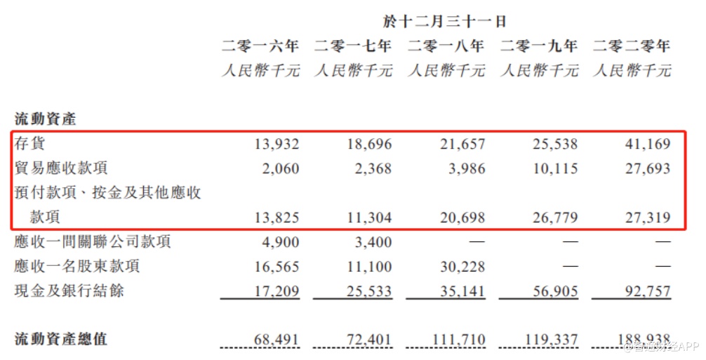 智通财经APP注意到,自2016年至2020年,纽曼思贸易应收款项从206万元增长至2769.3万元,复合年增长率达到约91.5%。同期预付款项、按金及其他应收款项由1382.5万元增长至2731.9万元,复合年增长率为约18.6%。截至2020年,公司存货、贸易应收款项、预付款项、按金及其他应收款项的金额达到0.96亿元,占比超过流动资产50%。