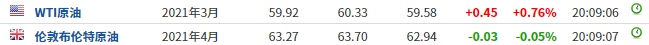 截至发稿,WTI原油涨0.76%,报59.92美元/桶。布伦特原油跌0.05%,报63.27美元/桶。
