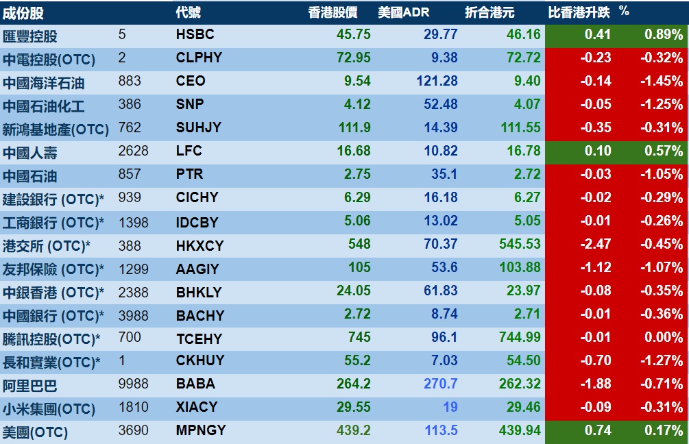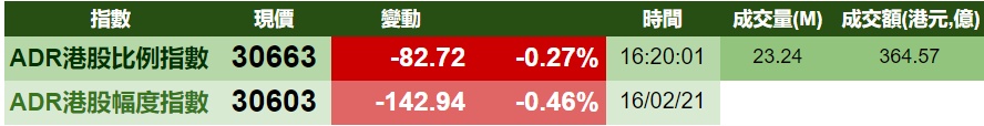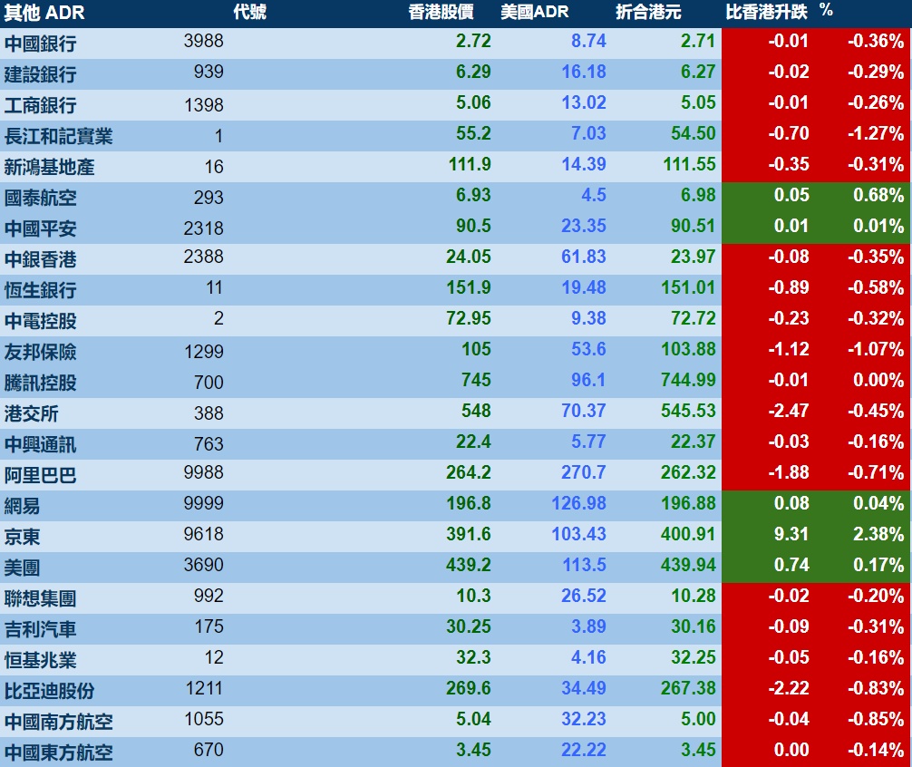 智通财经APP获悉,周二美股三大指数涨跌互现,港股ADR指数下挫,按比例计算收报30663点,跌82.72点或0.27%。