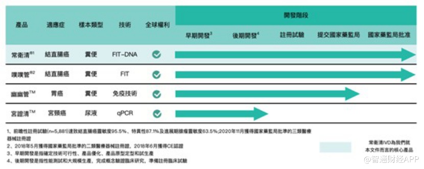 目前,其自主研发的两大结直肠癌筛查产品常卫清®及噗噗管®均已正式开始商业化并上市销售,成为该公司的主要收入来源;基于粪便的自检胃癌筛查测试产品幽幽管®已于2020年11月完成国家药监局注册申请的提交;非侵入性家用尿液宫颈癌筛查测试产品宫证清已进入后期开发阶段,预期将于2021年启动注册临床试验。