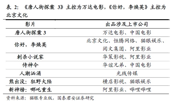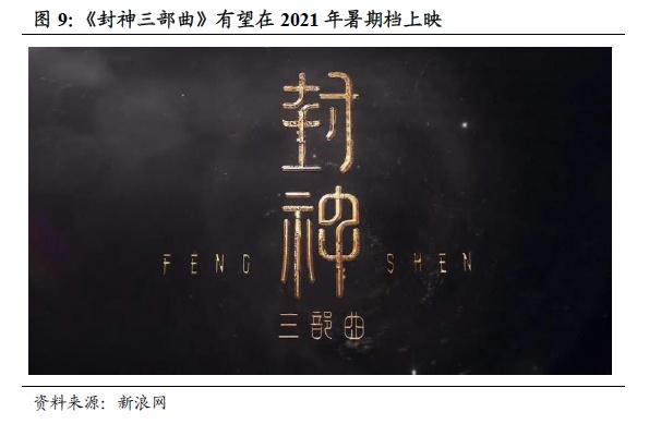 2021年春节档另一热门电影《你好,李焕英》的主控方北京文化重磅电影《封神三部曲》将在2021暑期档上映,具备爆款潜质。北京文化曾出品或联合出品过《战狼2》、《流浪地球》、《我不是药神》、《我和我的家乡》等多部爆款电影。由其出品的科幻类电影《封神三部曲》的第一部将在2021年暑期档上映,有望获得较好的票房成绩。