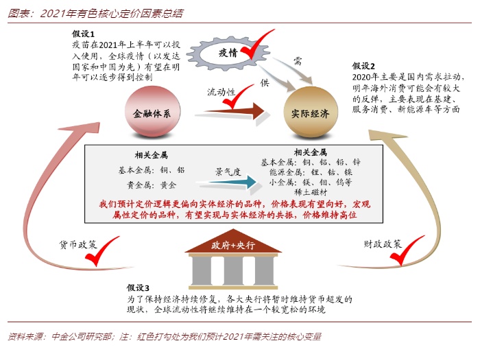 4)RCEP+中欧投资协定谈判完成,有利于促进区域经济贸易、投资与合作,推动我国双循环发展战略,同时推动世界经济复苏增长。整体来看,疫苗和流动性方面的变化基本证实了我们在年度展望报告中的观点,未来我们仍然坚持“国内需求有支撑+海外需求复苏拉动需求,宽松流动性推动金属价格”的主要逻辑。