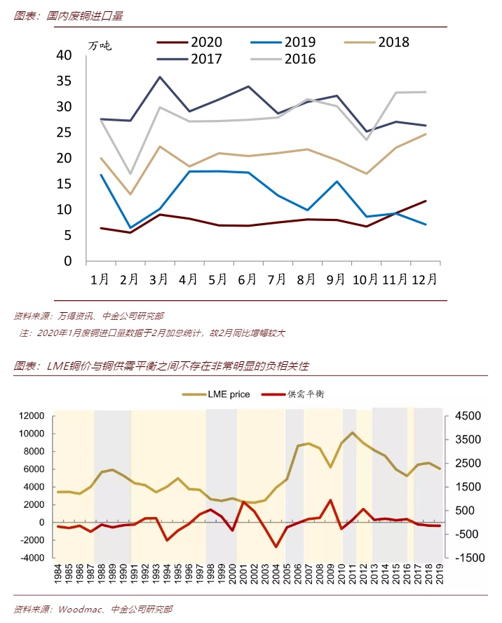 供给干扰因素不可忽视,我们预计2019-2021年铜矿产量复合增速为2.2%,废铜进口或仍有限,同时我们认为供需平衡对铜价的指引作用相对较弱。