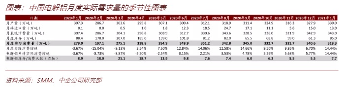 电解铝和氧化铝的产能释放情况如何?国内电解铝新增产能也在逐渐释放,但投放规模和速度不及氧化铝,氧化铝价格或仍然承压,维持电解铝利润空间。根据SMM,2020年国内电解铝投产产能约为254.6万吨,预计2021年投产产能为247.3万吨,同比略降2.9%,且电解铝经过2020年四季度集中产能释放,我们预计短期产能增长将有所放缓。根据百川资讯,2021年预计新增产能达到820万吨,主要投产地为西南地区,其中2021年一季度锦江龙州/贵州广铝项目分别预计投放100/30万吨,虽然考虑北方采暖季影响运输、环保限产等方面影响,氧化铝产量阶段性有所减少,但考虑需求也逐渐进入淡季,我们认为氧化铝价格或横盘运行,短期或仍有一定价格压力,继续压低电解铝成本从而释放利润空间。