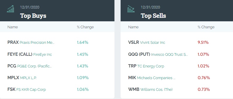 前五大卖出标的分别是:Vivint Solar(VSLR.US)、纳斯达克100指数ETF看跌期权(QQQ.US, PUT)、TC Energy(TRP.US)、Michaels Companies(MIK.US)、威廉姆斯(WMB.US)。