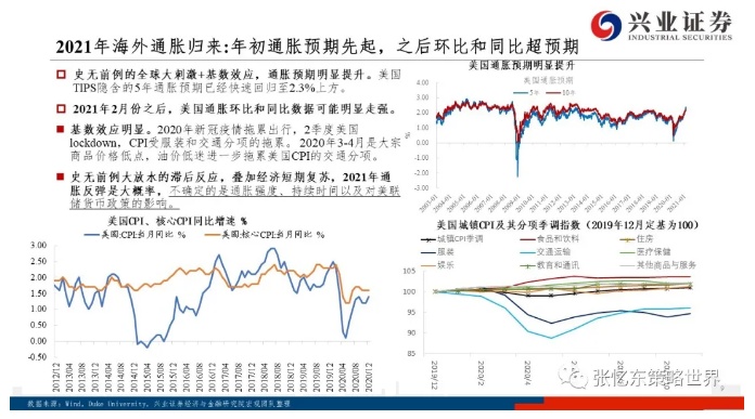 1.2、史无前例的全球大刺激+基数效应,通胀预期明显提升