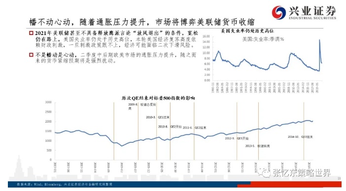 幡不动心动,随着通胀压力提升,市场将博弈美联储货币收缩。2021年美联储甚至不具备释放鹰派言论“放风退出”的条件,宽松仍在路上。不是幡动是心动,二季度中后期欧美市场的通胀压力提升,随之而来的货币紧缩预期将是强烈扰动。