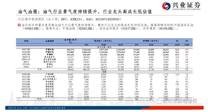 油气油服:油气行业景气度持续提升,行业龙头高成长低估值。