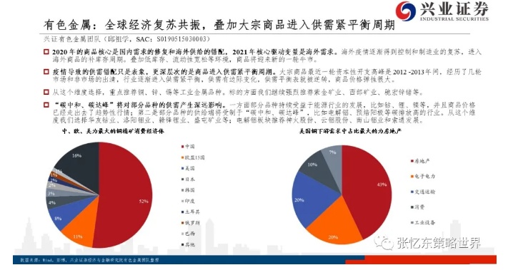 有色金属:全球经济复苏共振,叠加大宗商品进入供需紧平衡周期。