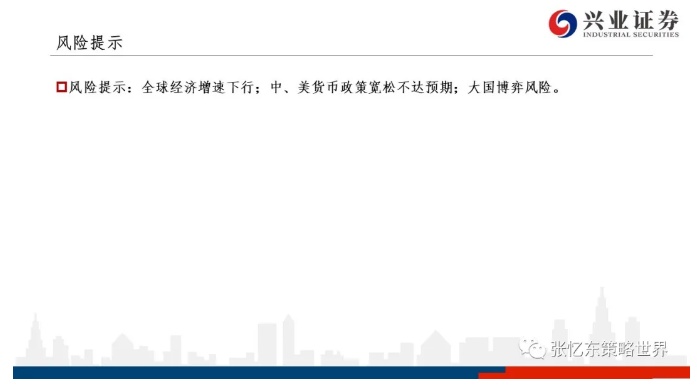 风险提示:全球经济增速下行;中、美货币政策宽松不达预期;大国博弈风险