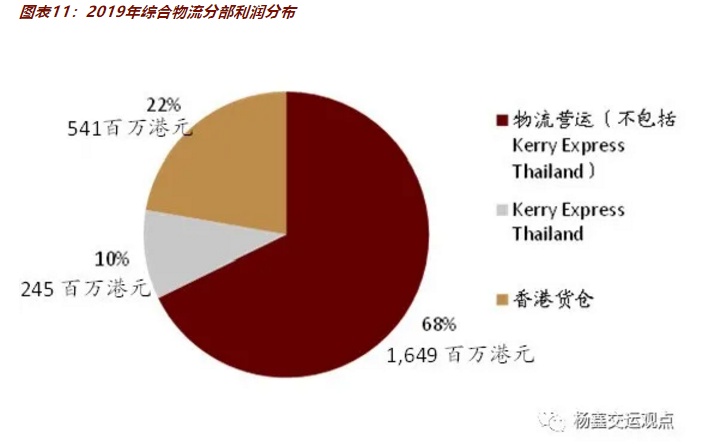 目前公司的物流运营主要集中在亚洲地区。我们用剔除泰国快递后的物流营运业绩表现,去近似的衡量公司合同物流的经营表现,2019年公司合同物流贡献16亿港元分部利润,合同物流2018-2019年两年利润复合增速为18%(剔除台湾地区后复合增速为22%),增长稳健。公司主要在全球物流设施与网络建设、维护B端头部客户关系、以及多元化业务组合灵活调整业务重点等方向上已经建立核心竞争力,业绩或将加速释放。