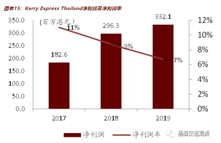 目前泰国市场贡献了大部分快递收入和盈利。嘉里快递(泰国)是公司持股52%的子公司,成立于2006年从事当地快递业务,于2020年12月于泰国上市(代码:KEX)。嘉里快递(泰国)目前在泰国拥有1.6万个以上服务点、600个配送中心,次日达快递服务覆盖了泰国99.99%以上地区,嘉里快递(泰国)平均每天寄送的包裹数超过120万个(2020年被《Marketeer》评为2019-2020年泰国第一品牌)。