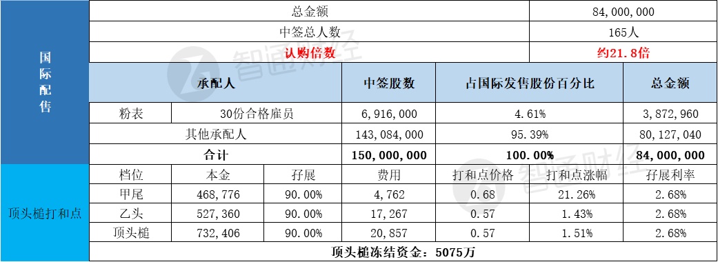 国际配售申购人数未披露,认购倍数约21.8倍。