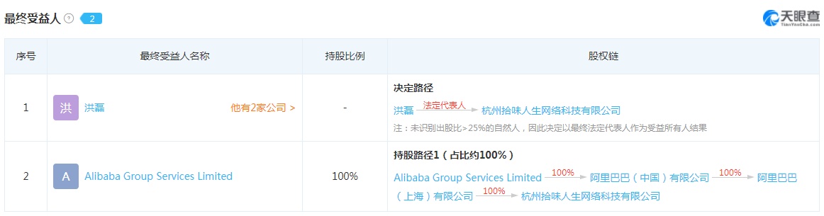 智通财经APP获悉,据天眼查,近日,杭州拾味人生网络科技有限公司成立,注册资本1000万人民币,法定代表人为洪磊,经营范围包括食品互联网销售、食品经营、水产品批发和零售、鲜肉零售和批发、食用农产品零售和批发等。值得注意的是,该公司由阿里巴巴(上海)有限公司100%控股。