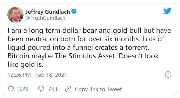 冈拉克在社交媒体上表示,他曾经很长时间都是黄金多头和美元空头,但过去6个多月已经对两者都持中性态度。相反,他指出,在新冠疫情期间各国向金融系统注入庞大流动性的过程下比特币疯狂上涨,该加密货币未来或将成为下一个“刺激资产”。