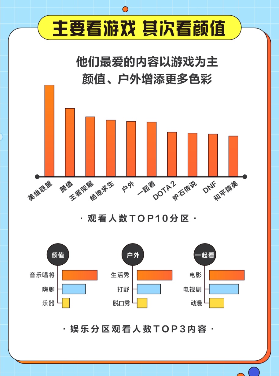 报告显示,虽然近年来游戏新品层出不穷,但英雄联盟依然是最受95后游戏直播用户喜爱的游戏。据统计,英雄联盟占据了游戏直播用户最爱分区榜首位置,其他共同入围TOP10的分区依次为:颜值、王者荣耀、绝地求生、户外、一起看、DOTA2、炉石传说、DNF、和平精英。