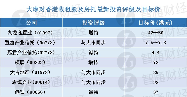 该行预期,九龙仓置业(01997)分派会取得下跌,不过派息比率会维持,决定上调对其目标价由42港元升至50港元;该行下调对置富(00778)目标价由7.5港元降至7.3港元。